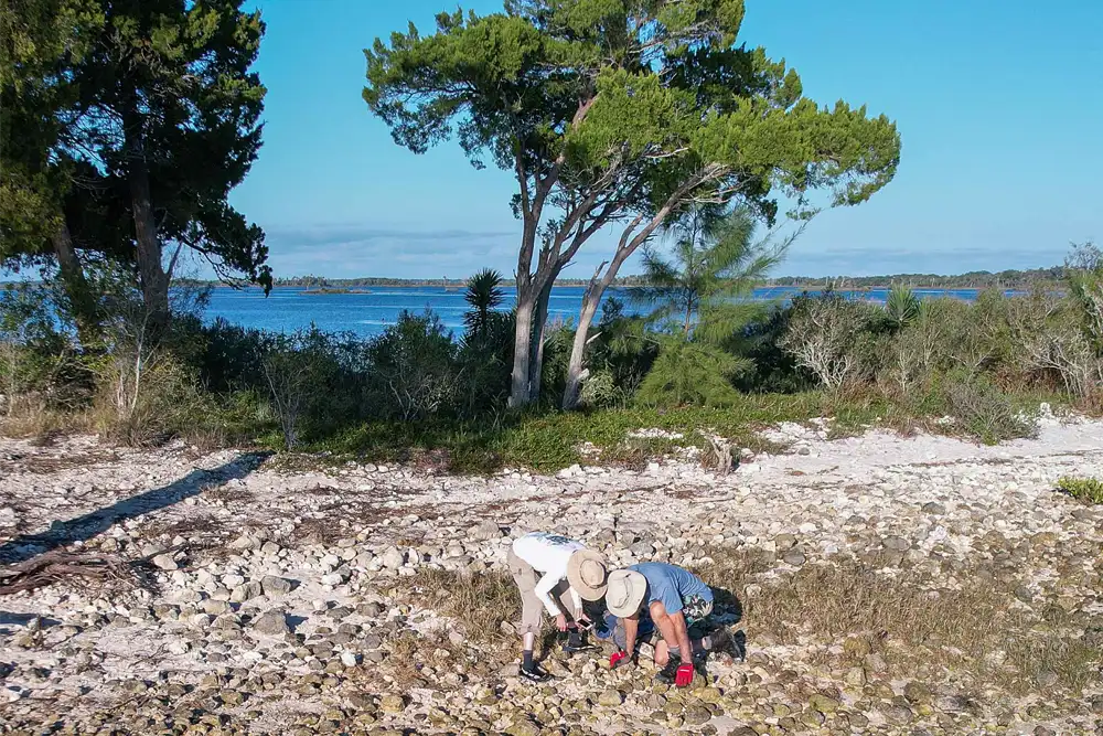 These exceptionally well-preserved fossil echinoids are a type of sea urchin known as “sea-biscuits” and are from some of the oldest rock native to Florida. Modern descendants can be found in the Bahamas. They lived in a shallow sea that covered much of Florida and Georgia during the Eocene Epoch about 34 million years ago. After the animals died, they were buried in fine sediments which preserved their intricate details. We excavate these unique specimens from islands in the Gulf of Mexico and carefully prepare them to preserve the fine details of the shells.