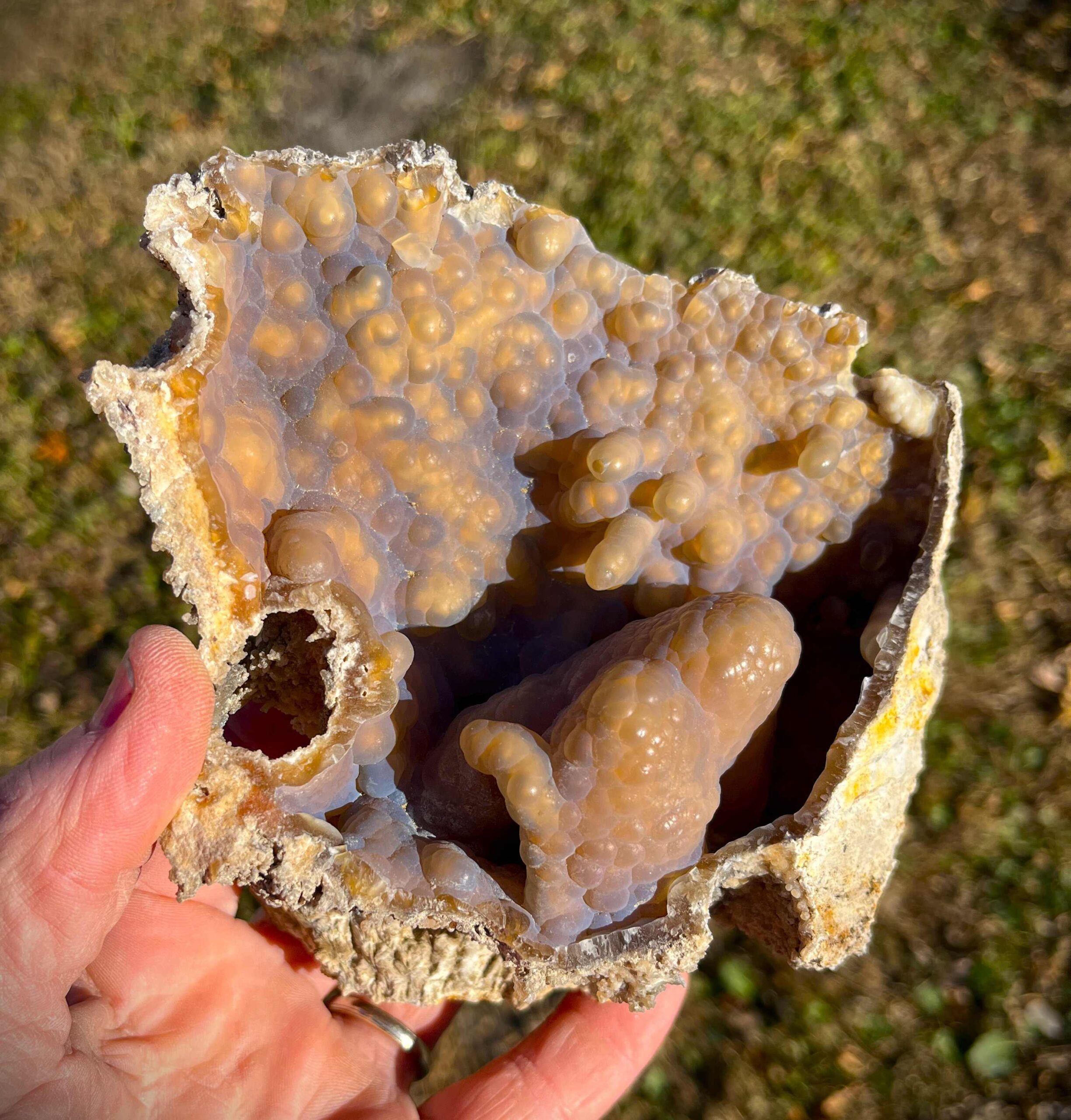 Note: Beautiful carnelian agate. Segment of a large hollow piece with small flat bottom so it sits as shown.
